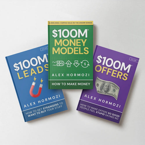 I'm giving you the complete $100M system - all three books plus everything you need to implement them. $100M Offers, $100M Leads, $100M Money Models in hardcover. Plus the Lost Chapters with advanced frameworks. Plus the $100M Launch Masterclass showing how we did $106M in 72 hours. Plus the complete Workbook 3-Pack for tactical implementation.